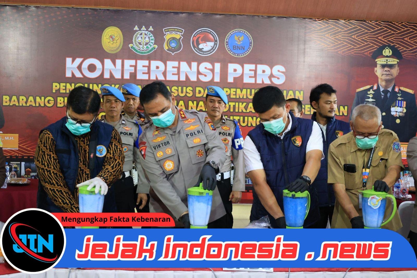 Babel – Jejakindonesia.news // Kapolda Bangka Belitung Irjen Pol Viktor T Sihombing memimpin konferensi pers pengungkapan dan pemusnahan barang bukti narkotika dan obat-obatan berbahaya, Selasa (14/4/26).
