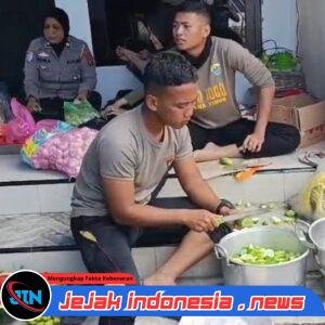 Dengan peralatan lengkap dan tenaga personel yang siaga, petugas menyiapkan makanan untuk para warga, termasuk anak-anak, lansia, dan kelompok rentan lainnya.