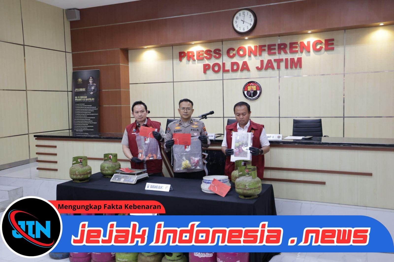 SURABAYA – Jejakindonesia.news|Polda Jawa Timur (Jatim) melalui Direktorat Reserse Kriminal Khusus (Ditreskrimsus) kembali berhasil membongkar praktik ilegal pemindahan isi Liquefied Petroleum Gas (LPG) subsidi dari tabung 3 kg ke 12 kg.