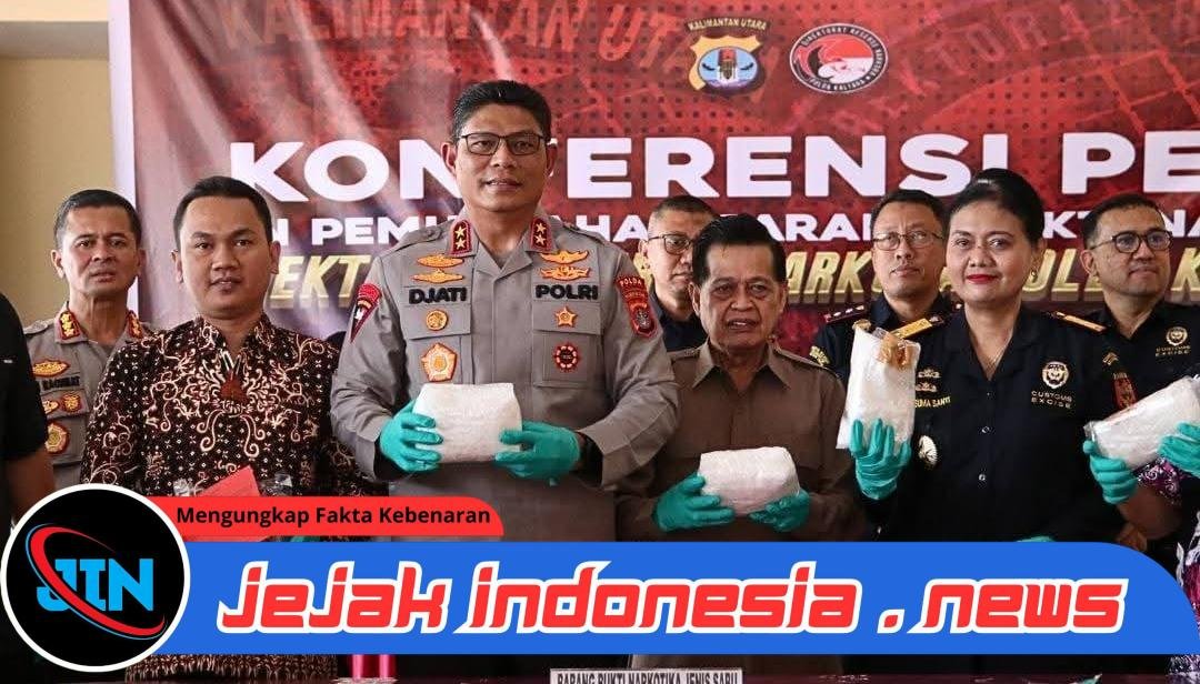 Kaltara – Jejakindonesia.news|Kepolisian Daerah Kalimantan Utara (Polda Kaltara) menggelar konferensi pers sekaligus pemusnahan barang bukti narkotika hasil pengungkapan kasus tindak pidana narkoba sepanjang bulan September 2025 yang dilaksanakan di Selasar Gedung B Mapolda Kaltara. Kamis (02/10/2025).