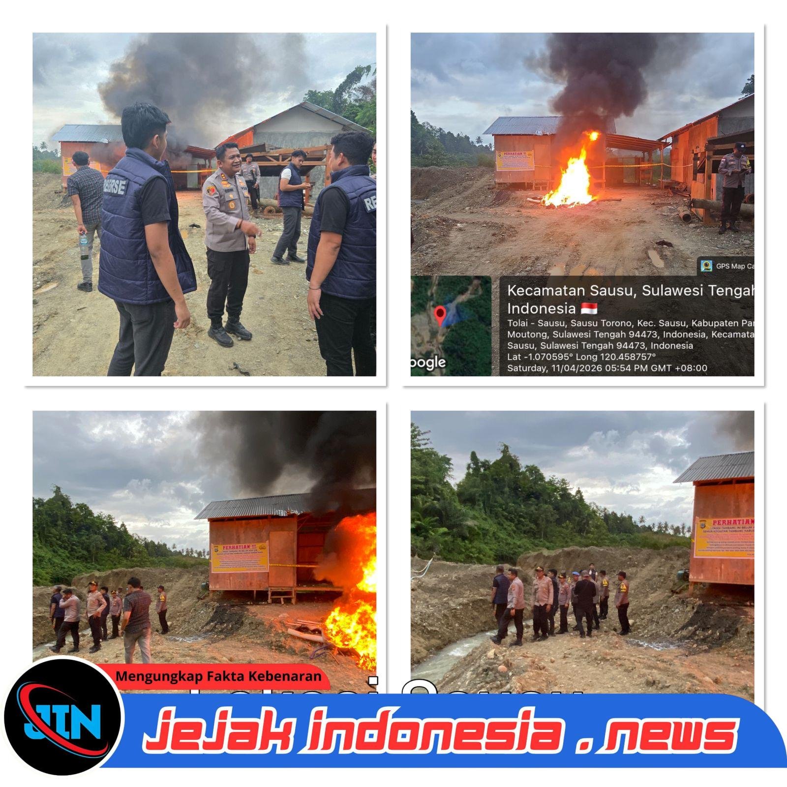 Parigi Moutong, – Jejakindonesia.news // Tim gabungan dari Polda Sulawesi Tengah dan Polres Parigi Moutong menggelar operasi penertiban dan penegakan hukum terhadap aktivitas Pertambangan Emas Tanpa Izin (PETI) di Dusun I Mentawa, Desa Sausu Torono, Kecamatan Sausu, pada Sabtu (11/4/2026). Sore.