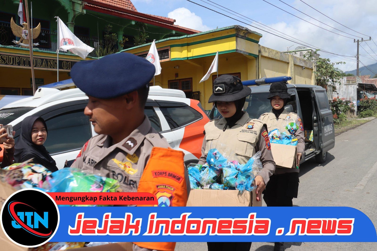 Sekitar pukul 09.30 WIB, para siswa disambut hangat oleh sejumlah Polisi Wanita (Polwan) Polres Lumajang dan personel Brimob Polda Jatim yang melaksanakan kegiatan trauma healing sekaligus pembagian snack untuk anak-anak.