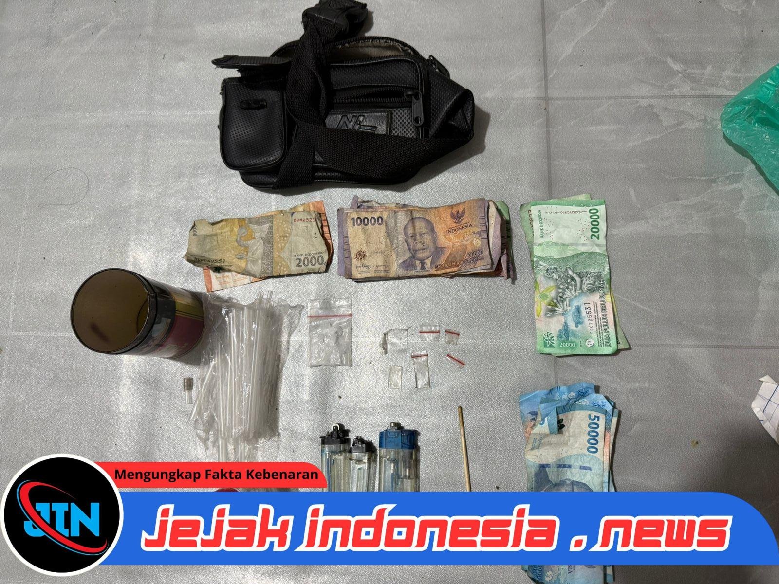 Dari hasil penggeledahan, ditemukan 1 paket sedang diduga narkotika jenis sabu yang dikemas dalam plastik bening klip merah. Selain itu, turut diamankan barang bukti lain berupa uang tunai sebesar Rp447.000, satu tas sandang warna hitam, satu alat hisap (bong), tiga unit handphone Android, puluhan pipet plastik, serta satu kaleng rokok merek Gudang Garam.