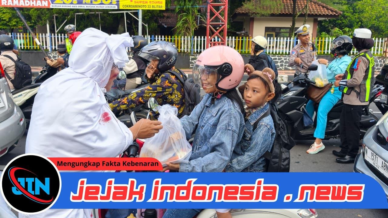Dalam kegiatan tersebut, petugas membawa replika pocong serta menghadirkan peraga korban kecelakaan lalu lintas penyandang disabilitas untuk menarik perhatian pengguna jalan.