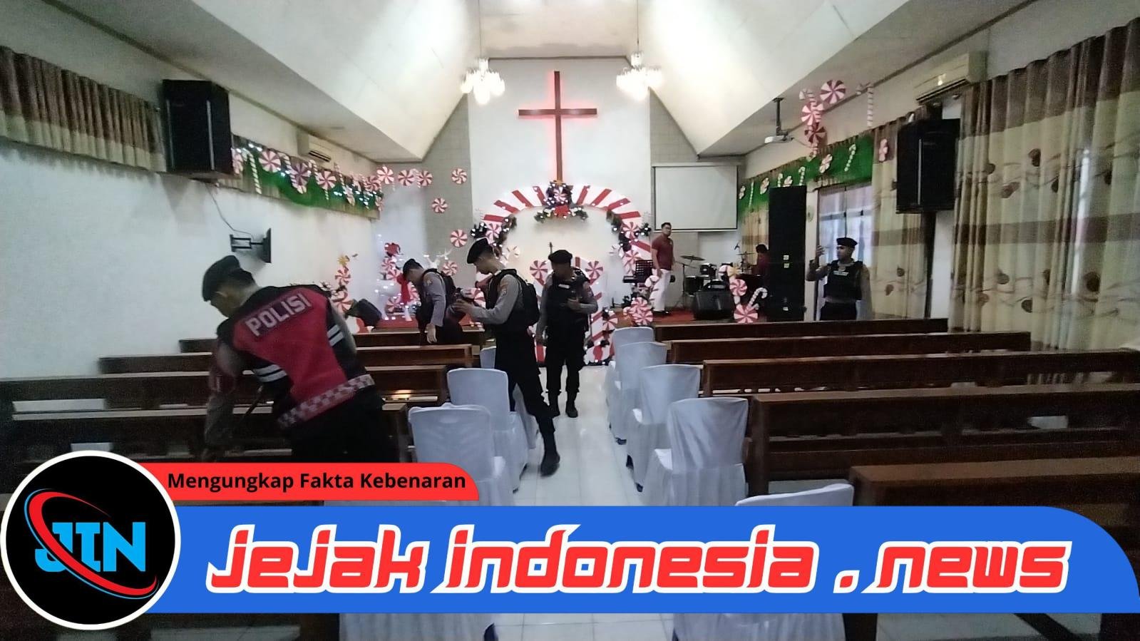 BOJONEGOROJejakindonesia.news // Personel Polres Bojonegoro Polda Jatim melaksanakan sterilisasi gereja guna memastikan keamanan dan kenyamanan umat Kristiani menjelang pelaksanaan ibadah.