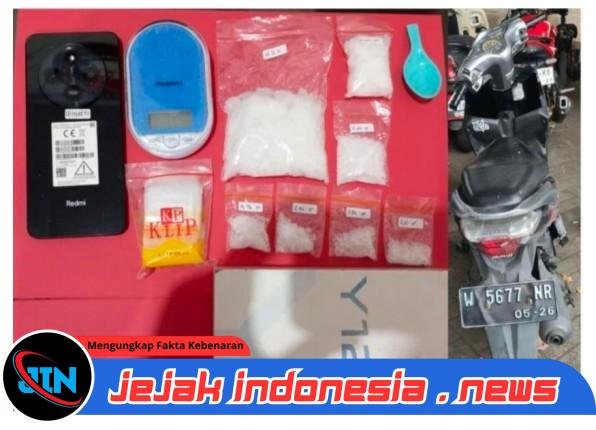 Selain sabu yang dikemas dalam tujuh plastik klip dengan berat bervariasi, petugas juga mengamankan sejumlah barang bukti lain berupa satu unit timbangan elektrik, satu unit handphone, plastik klip kosong, sendok plastik, dos box HP, serta satu unit sepeda motor Honda Vario.