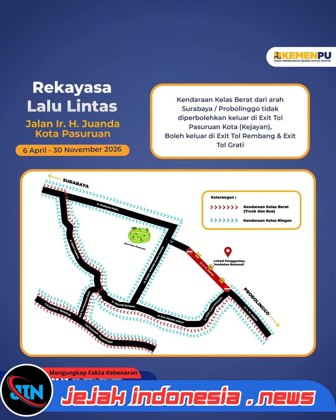 KOTA PASURUAN — Jejakindonesia.news // Penutupan total Jalan Ir H Juanda Kota Pasuruan resmi diberlakukan mulai Rabu (08/04/2026).
