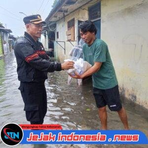 Selain memantau situasi, personel juga memberikan bantuan nasi bungkus dan air minum kepada warga yang terdampak banjir sebagai bentuk kepedulian dan dukungan kepada masyarakat.