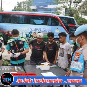 Sebanyak 43 orang pengemudi angkutan baik penumpang maupun barang dilakukan tes urine di dua lokasi.