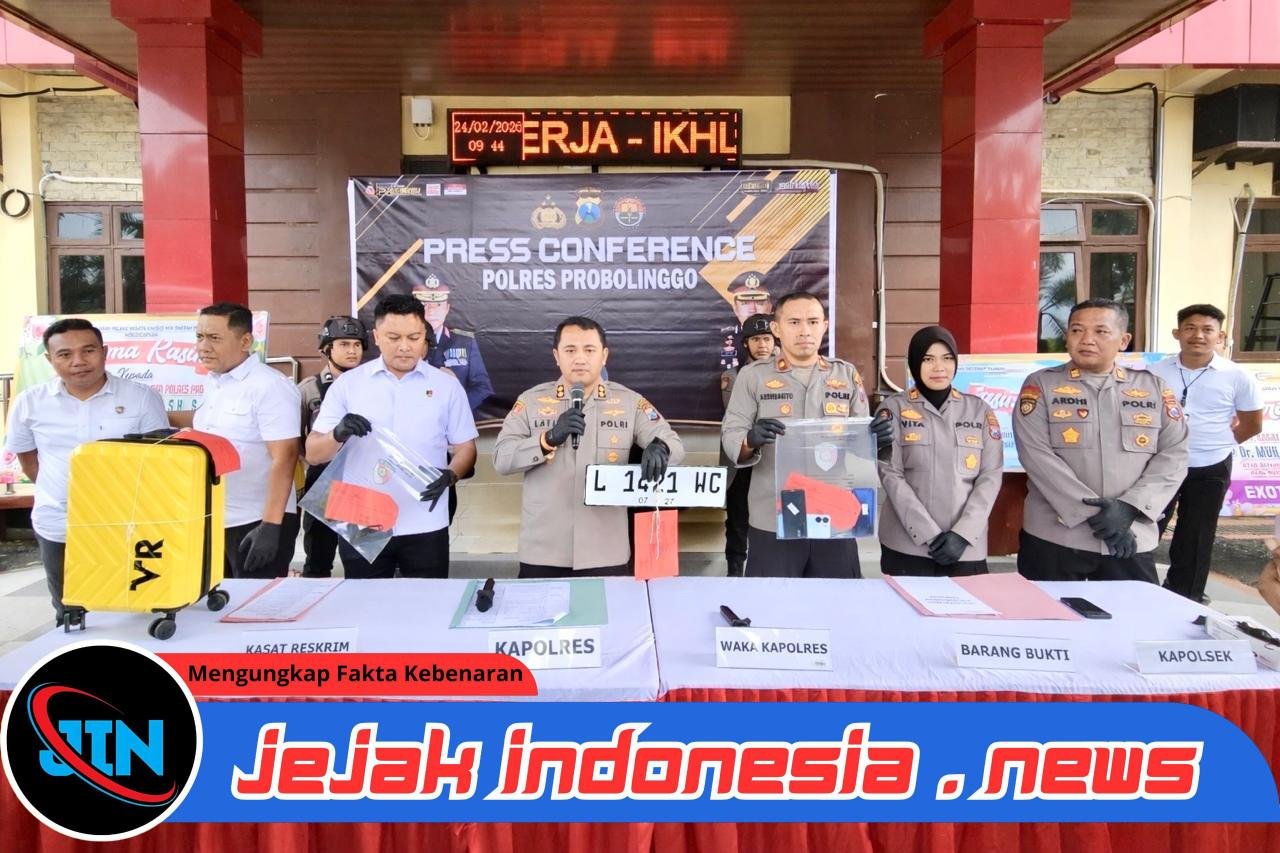 “Modus operandi yang digunakan komplotan pelaku adalah dengan merusak kunci pintu mobil Hiace yang digunakan korban, kemudian mengambil barang-barang yang berada di dalam kendaraan tersebut,” kata AKBP Latif, saat konferensi pers di Lobby Mapolres Probolinggo, Selasa (24/2/2026).