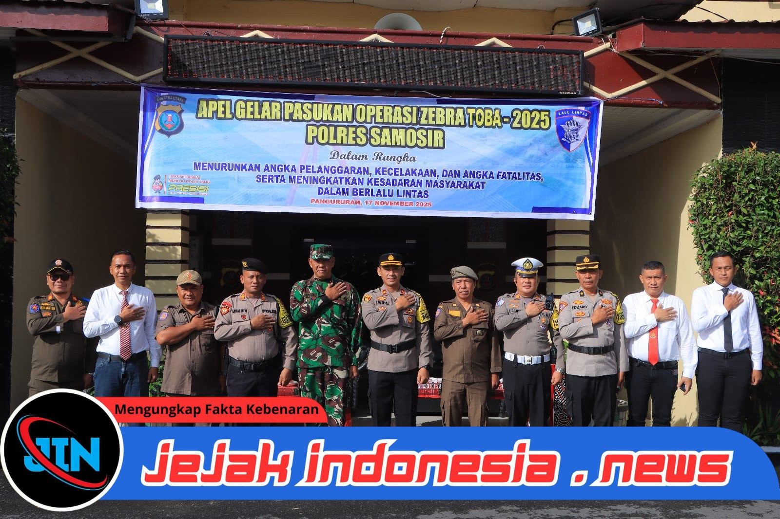 Samosir – Jejakindonesia.news|Polres Samosir melaksanakan Apel Gelar Pasukan Operasi Zebra Toba Tahun 2025 pada Senin (17/11/2025) pukul 08.00 WIB di Lapangan Mako Polres Samosir.