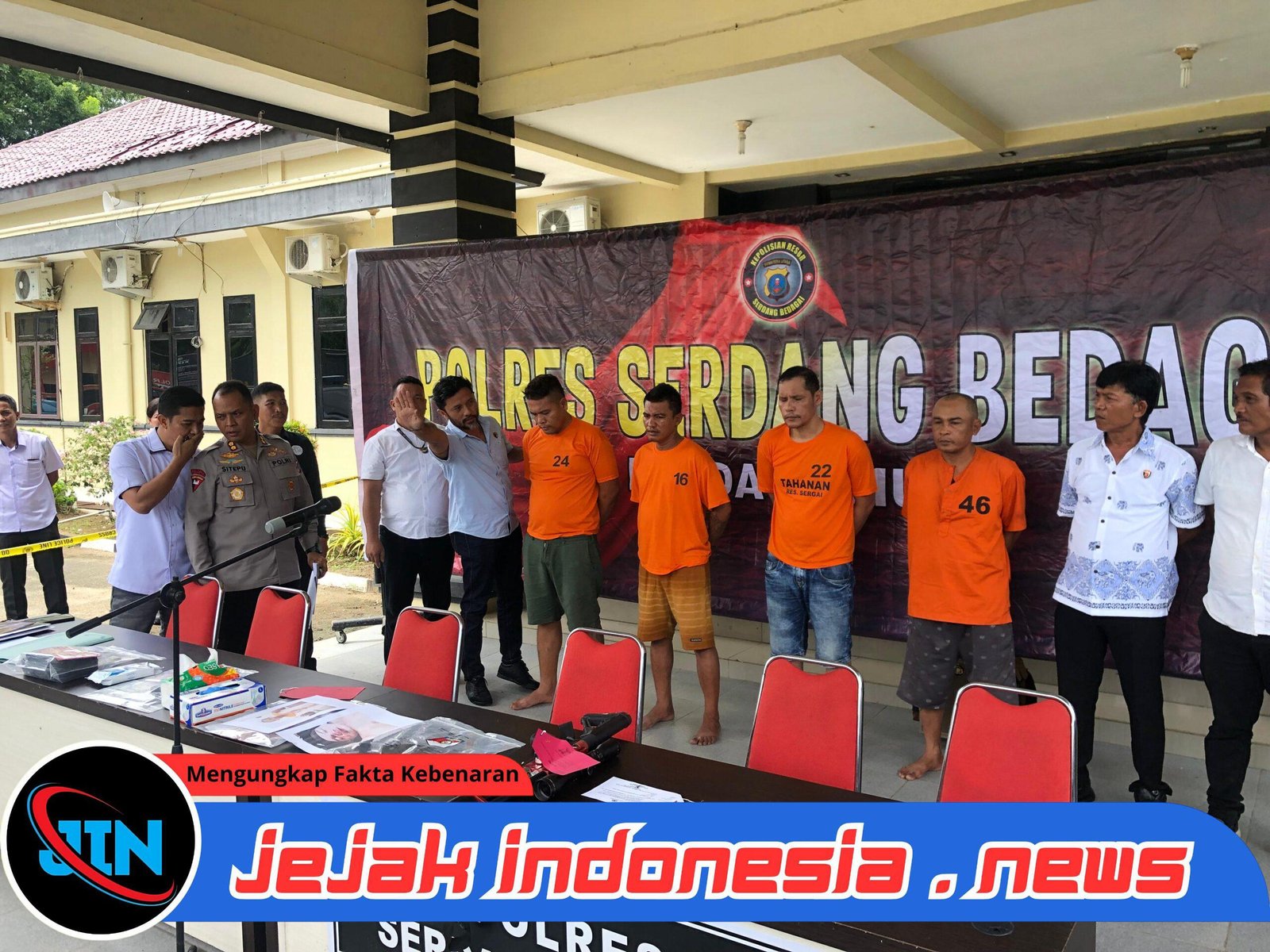 Kapolres Serdang Bedagai, AKBP Jhon Sitepu, SIK, MH, dalam konferensi pers di halaman Mako Polres Sergai, Kamis (25/9) menjelaskan, setidaknya ada empat tersangka utama yang diamankan. Mereka adalah Marnakok Sitanggang alias Nakok (41), Marubah Sitanggang (42), Muhammad Saprin alias Apin Dayak (37), dan Dedek Hidayat (47).
