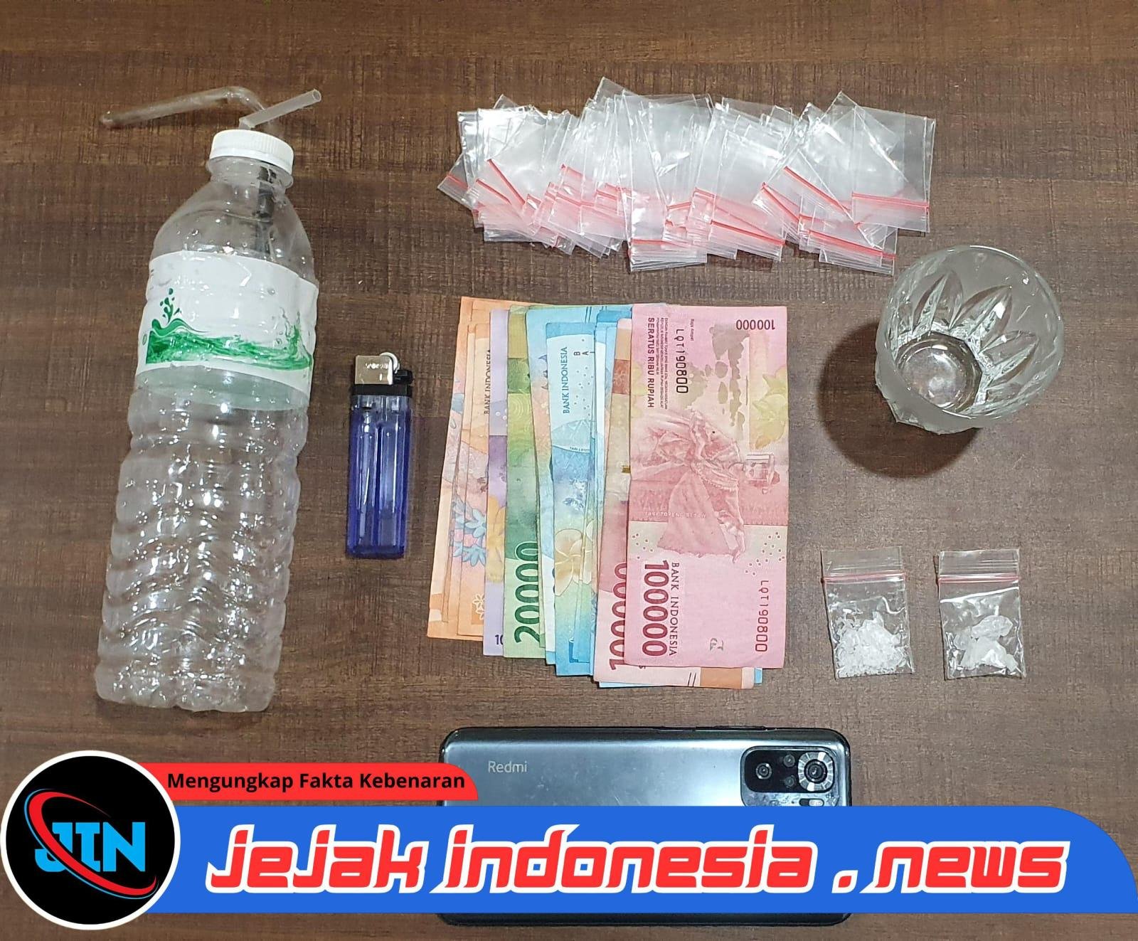 Barang bukti yang berhasil diamankan antara lain : 2 paket sabu seberat masing-masing 1 gram, Seperangkat alat hisap berupa bong, 30 plastik klip kecil, uang tunai sebesar Rp 680.000, dan 1 unit ponsel.