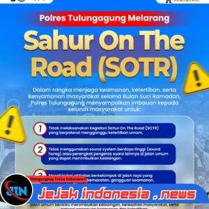 TULUNGAGUNG – Jejakindonesia.news // Polres Tulungagung Polda Jawa Timur (Jatim) secara tegas melarang kegiatan sahur on the road (SOTR) terlebih dengan menggunakan sound horeg.
