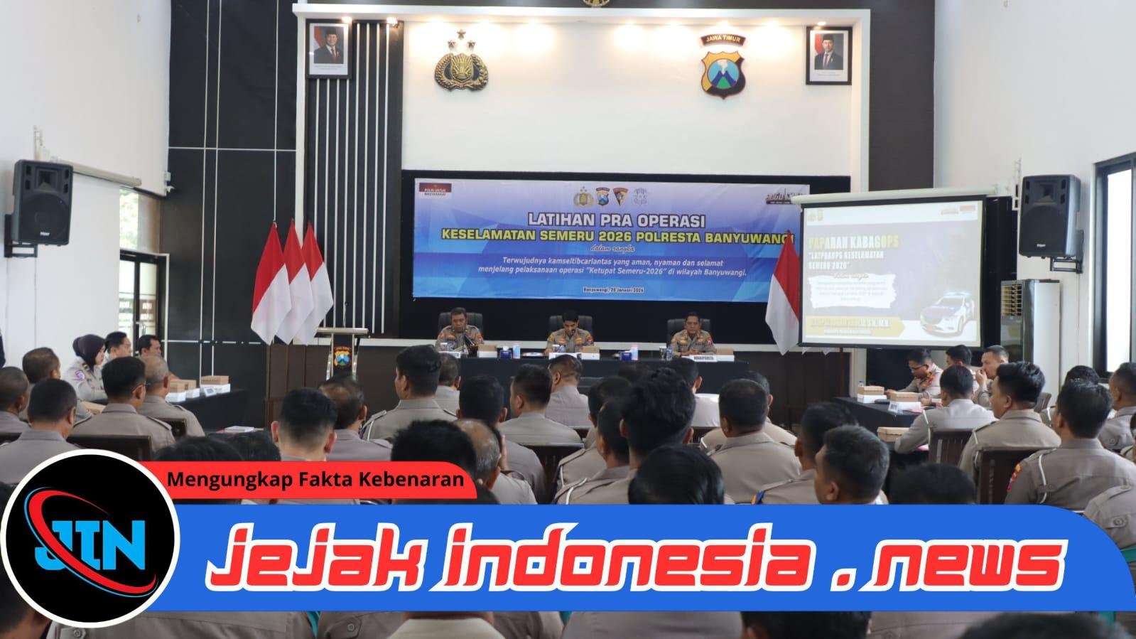 Banyuwangi – Jejakindonesia.news // Dalam rangka memantapkan kesiapan personel menjelang pelaksanaan Operasi Keselamatan Semeru 2026, Polresta Banyuwangi menggelar Latihan Pra Operasi (Latpraops) yang dipimpin langsung oleh Kapolresta Banyuwangi Kombes Pol. Dr. Rofiq Ripto Himawan, S.I.K., S.H., M.H., Rabu (28/01/2026), bertempat di Rupatama Mapolresta Banyuwangi.