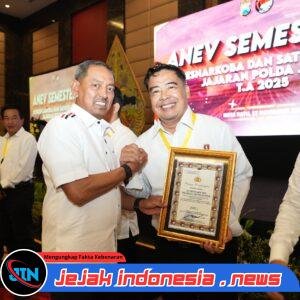 Banyuwangi – Jejakindonesia.news // Prestasi membanggakan kembali ditorehkan Polresta Banyuwangi. Pada kegiatan Rakernis dan Anev Ditresnarkoba Polda Jatim Tahun 2025, Kasat Resnarkoba Polresta Banyuwangi berhasil meraih penghargaan Juara II Kelompok A, sebagai apresiasi atas kinerja unggul dalam pengungkapan kasus narkoba selama periode Januari hingga November 2025. Jumat (28/11/2025)