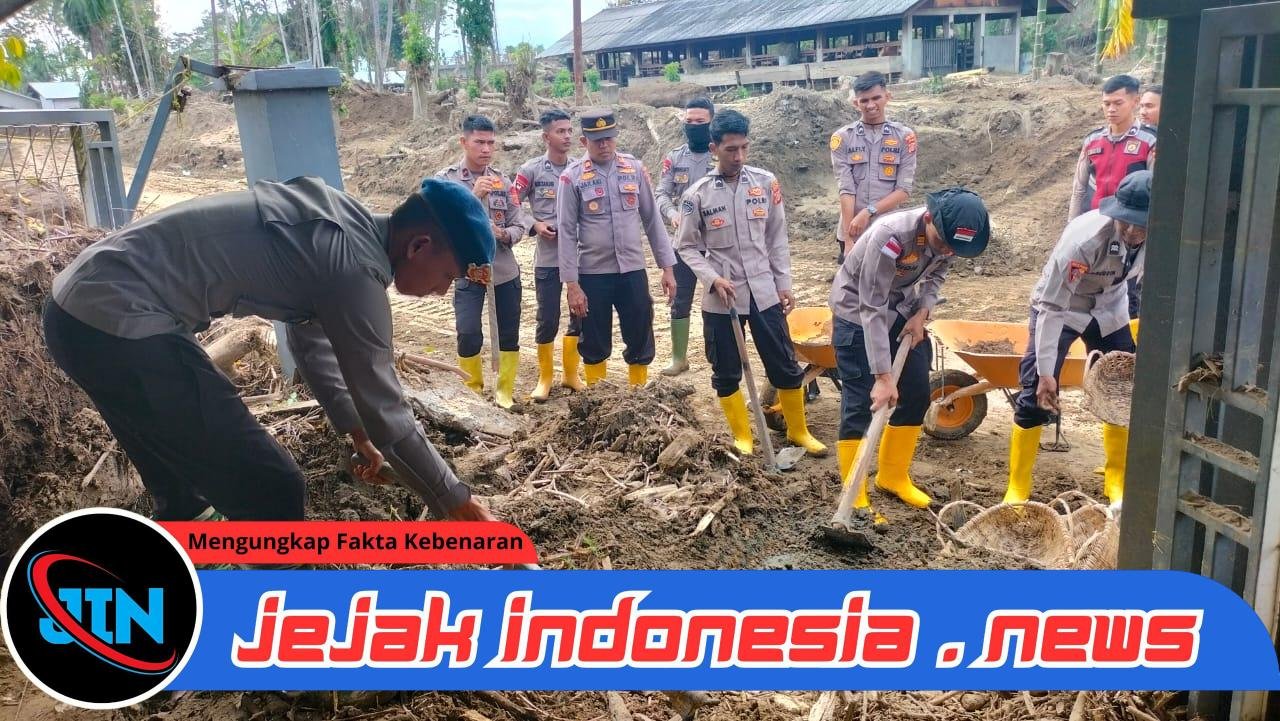 Pidie Jaya — Jejakindonesia.news // Semangat kebersamaan dan kepedulian kembali ditunjukkan oleh Polres Pidie Jaya bersama masyarakat, yang bergandengan tangan gotong royong pemulihan pasca banjir di Polindes Gampong Meunasah Mancang, Kecamatan Meurah Dua, Kabupaten Pidie Jaya, pada Senin (12/1/2026).