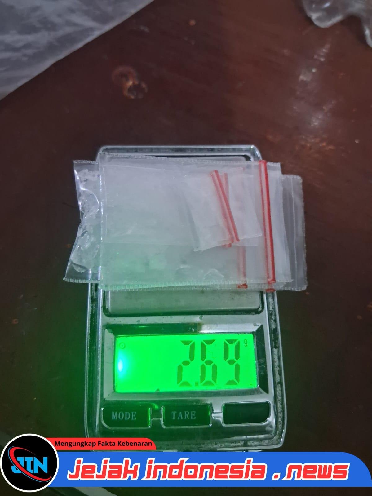 Dalam penggeledahan tersebut, petugas menemukan di tangan kiri tersangka W.A. satu plastik klip sedang berisi dua bungkus plastik klip kecil yang diduga berisi narkotika jenis sabu. Selain itu, dari dalam tas sandang hitam milik W.A. ditemukan dompet kuning bertuliskan “Why” yang berisi plastik klip kosong, satu unit timbangan elektrik warna hitam, serta dua buah sekop plastik. Petugas juga mengamankan dua bungkus plastik klip sedang yang diduga berisi sabu, satu unit bong yang terbuat dari botol plastik merek Coca-Cola yang dirangkai dengan dua buah pipet plastik dan satu kaca pyrex berisikan sisa bakaran narkoba, satu unit handphone merek Samsung warna hitam, gunting kecil warna merah, korek api, serta uang tunai sebesar Rp400.000 yang diduga merupakan hasil penjualan. Secara keseluruhan, total narkotika jenis sabu yang berhasil diamankan mencapai berat 2,69 gram.