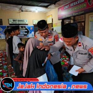 LHOKSUKON – Jejakindonesia.news // Personel Polsek Seunuddon jajaran Polres Aceh Utara yang dipimpin langsung Kapolsek Iptu Edi Suparman membagikan ratusan paket takjil kepada para pengguna jalan yang melintas di depan Mapolsek Seunuddon, Minggu (8/3/2026) sore.
