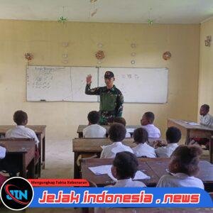 MERAUKE, PAPUA SELATAN – Jejakindonesia.news // Personel Satgas Kewilayahan Yonif 123/Rajawali yang bertugas di Pos Kimaam, Distrik Kimaam, Kabupaten Merauke, Provinsi Papua Selatan, kembali menunjukkan komitmennya dalam membangun sumber daya manusia di daerah terpencil dengan melaksanakan kegiatan GADIK (Tenaga Pendidikan) di SD Inpres Distrik Kimaam.(04/03/2026)