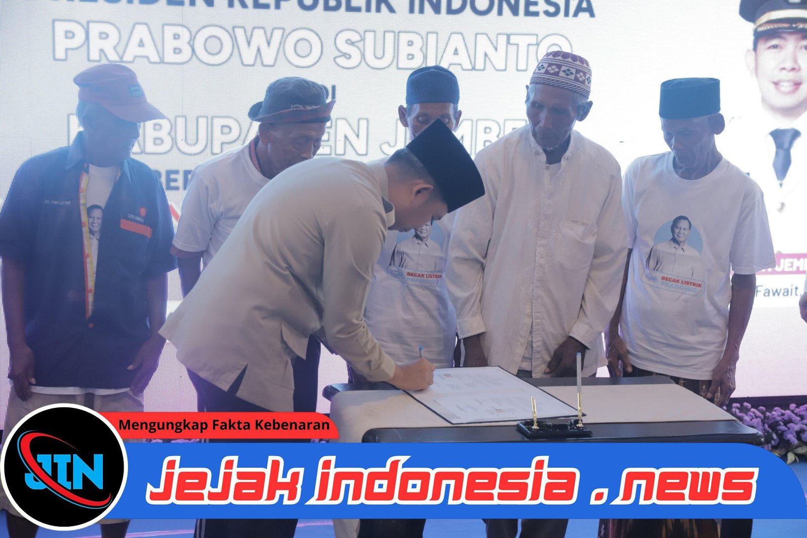 JemberJejakindonesia.news // Komitmen Presiden Republik Indonesia Prabowo Subianto dalam mengentaskan kemiskinan dan menghadirkan keadilan sosial kembali diwujudkan melalui program bantuan becak listrik. Sebanyak 100 unit becak listrik diserahkan kepada para pengayuh becak di Kabupaten Jember, dalam kegiatan serah terima yang berlangsung di Pendopo Wahyawibawagraha, Minggu (14/12/2025).