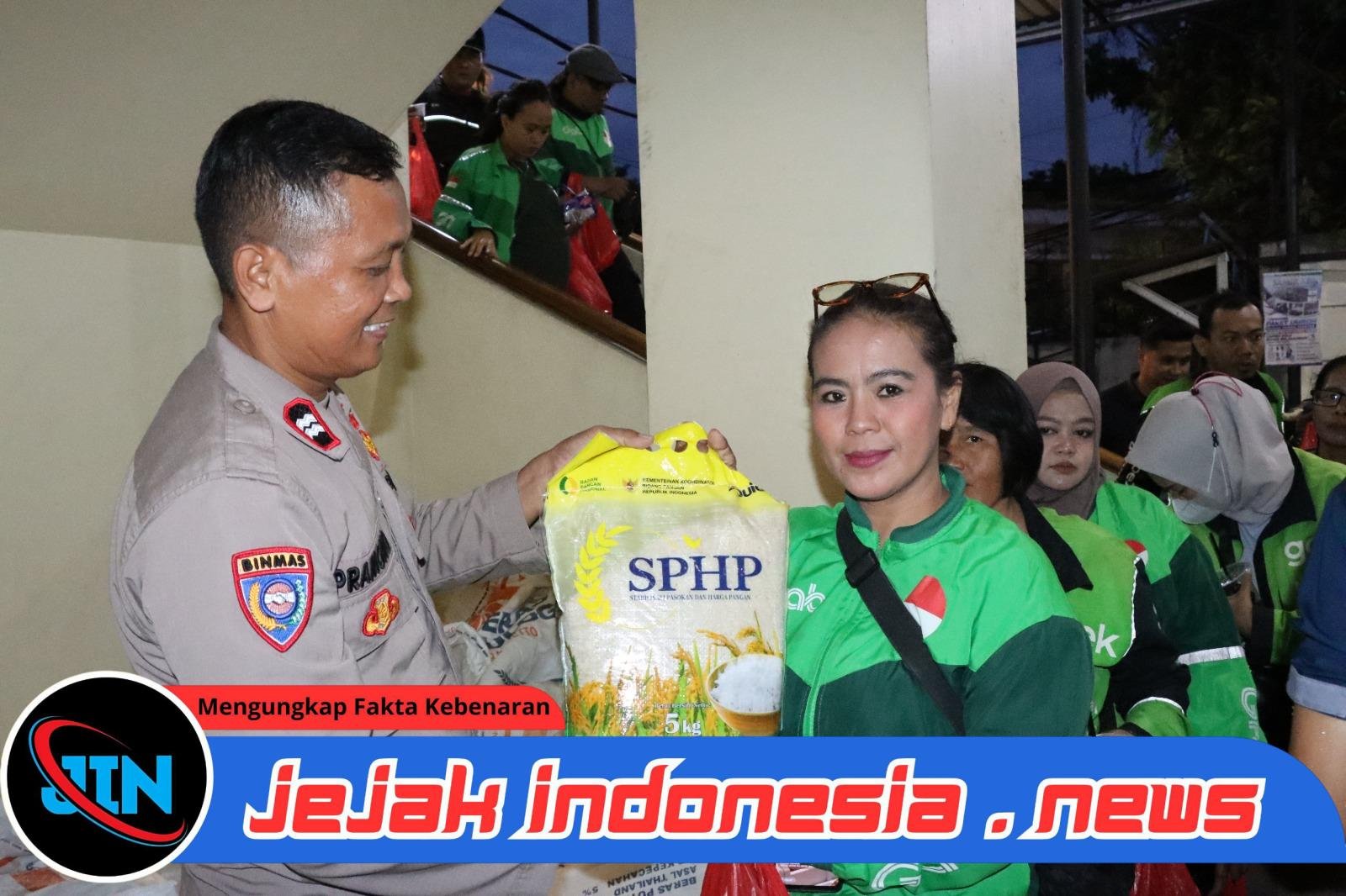 Sebagai bentuk kepedulian, dalam kegiatan tersebut Polres Metro Jakarta Barat turut membagikan bantuan beras kepada para pengemudi ojol yang hadir.