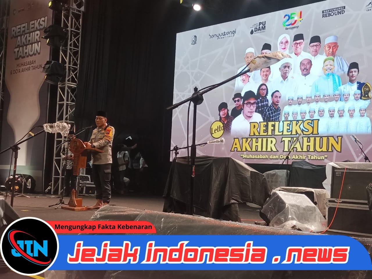 BANYUWANGIJejakindonesia.news // Suasana khidmat dan penuh haru mewarnai kegiatan Refleksi Akhir Tahun 2025 yang digelar oleh Pemerintah Kabupaten (PEMKAB) di Lapangan Taman Blambangan Banyuwangi, Rabu malam (31/12/2025). Ribuan masyarakat tumpah ruah menghadiri acara tersebut, yang menjadi momen istimewa bagi Kapolresta Banyuwangi Kombespol Pol. Dr. Rama Samtama Putra, S.I.K., M.Si., M.H., untuk menyampaikan sambutan sekaligus pamit kepada seluruh masyarakat Banyuwangi.