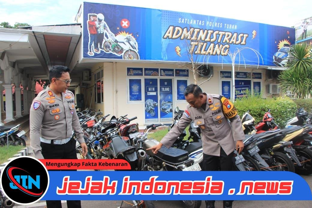 Tuban – Jejakindonesia.news | Merespon keluhan warga masyarakat, Satuan Lalu Lintas Polres Tuban Polda Jatim berhasil mengamankan sedikitnya 65 unit Motor yang tidak sesuai spesifikasi teknik (Spektek) diantaranya berknalpot bising.