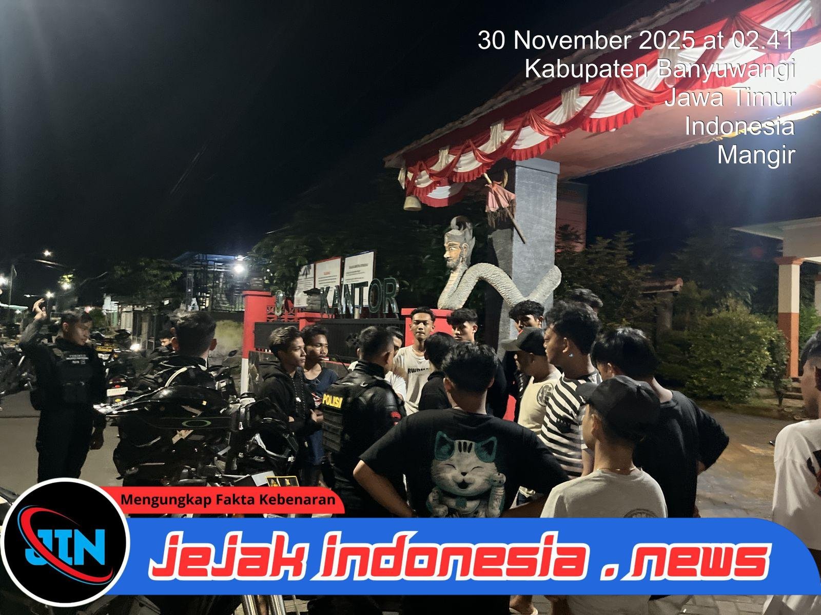 BanyuwangiJejakindonesia.news // Tim Patroli Perintis Presisi Polresta Banyuwangi dibawah pimpinan Ipda Eko Tjuk melakukan serangkaian penanganan terhadap kejadian menonjol yang berlangsung pada Minggu (30/11/2025) dini hari. Mulai dari aktivitas balap liar hingga potensi tawuran antarpemuda, seluruh dinamika tersebut dapat diatasi melalui respons cepat dan pendekatan yang humanis.