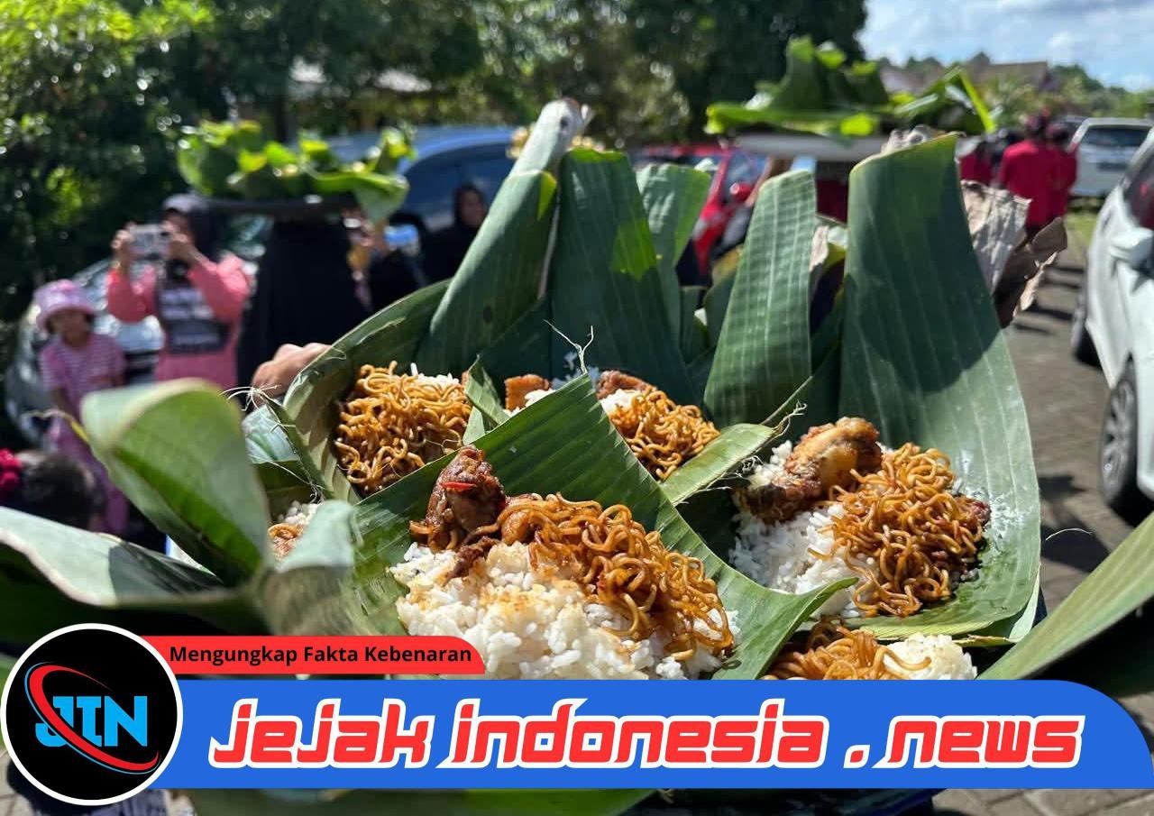 Pawai kemudian bergerak menuju sumber mata air Kajar, tempat seluruh warga berkumpul untuk makan bersama. Momen ini menjadi simbol kuat solidaritas sosial dan kebersamaan lintas generasi.