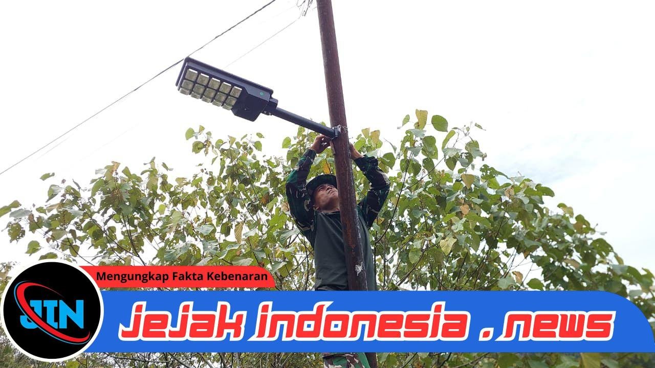 Tapanuli Tengah – Jejakindonesia.news // Personel Yonif 125/SMB bersama Personel Komlekdam I/BB melaksanakan pemasangan lampu solar light dan lampu solar system di sepanjang jalan serta membantu pemasangan lampu di rumah-rumah warga Desa Mardame, Kecamatan Sitahuis, Kabupaten Tapanuli Tengah, Sabtu (13/12/2025).