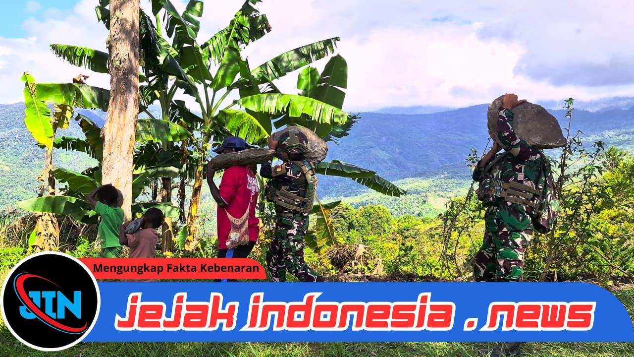 Kabupaten Membramo Tengah – Jejakindonesia.news | Satgas Pamtas RI-PNG Kewilayahan Yonif 521/DY Pos Eragayam bersama masyarakat dan anak anak melaksanakan kegiatan gotong royong pengangkatan batu di Distrik Eragayam, Kabupaten Membramo Tengah. (20/9/2025).