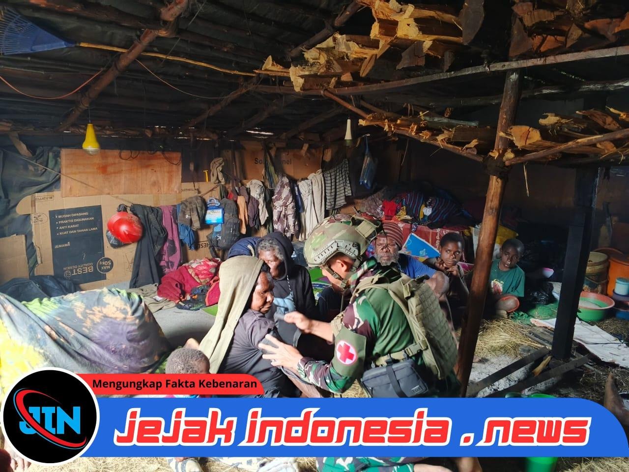 Kegiatan yang dipimpin oleh Serda Arfin itu berlangsung penuh keakraban. Prajurit mendatangi honai warga satu per satu, menyapa sekaligus memberikan pelayanan kesehatan secara langsung di dalam rumah adat masyarakat Papua tersebut.