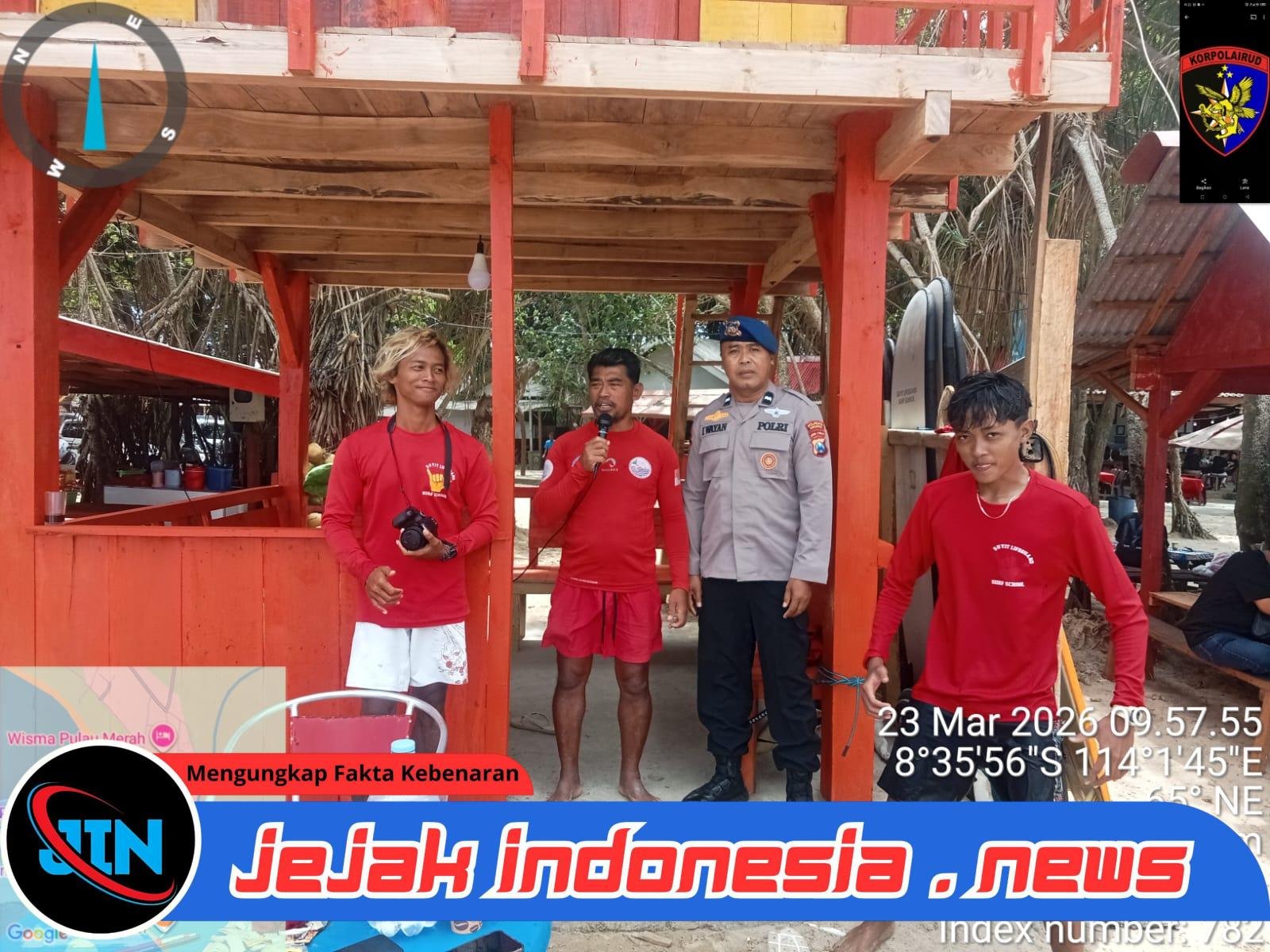 Banyuwangi – Jejakindonesia.news || Potensi bahaya di kawasan wisata tak bisa dianggap sepele. Satpolairud Polresta Banyuwangi turun langsung ke Pantai Pulau Merah, Kecamatan Pesanggaran, untuk memperketat pengawasan di tengah kondisi ombak besar dan angin kencang, Senin (23/3/2026).