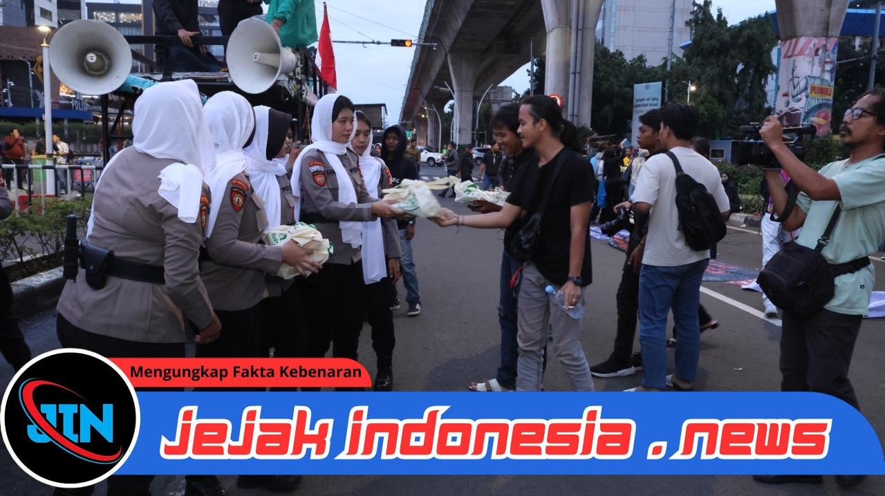 JAKARTA – Jejakindonesia.news // Pemandangan berbeda terlihat dalam pengamanan penyampaian aspirasi oleh kelompok mahasiswa di depan Mabes Polri, Jumat (27/2). Memasuki bulan suci Ramadhan, Polda Metro Jaya menerapkan pola pengamanan progresif yang jauh dari kesan kaku. Alih-alih barikade yang intimidatif, para personel yang bertugas justru tampil religius dengan mengenakan peci dan syal bagi polisi laki-laki, serta jilbab bagi Polwan, sebagai bentuk penghormatan terhadap kekhidmatan bulan puasa.