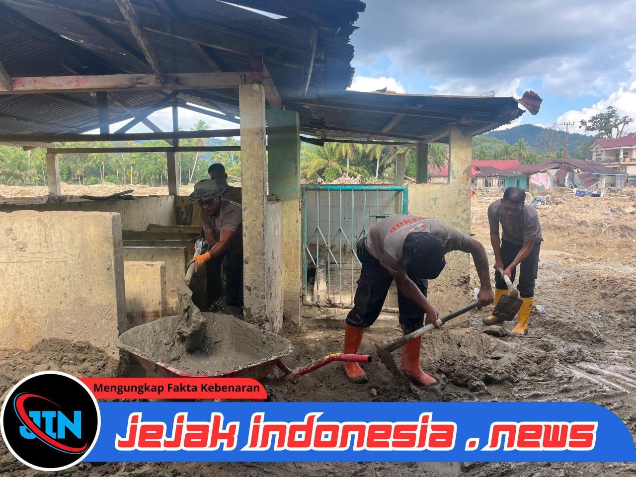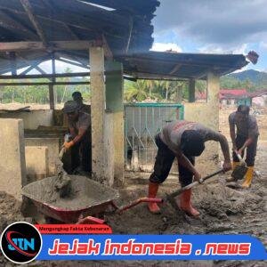 TAPANULI SELATAN — Jejakindonesia.news // Kepedulian terhadap masyarakat terdampak bencana kembali ditunjukkan jajaran Satuan Brimob Polda Sumatera Utara. Personel Batalyon C Sat Brimob Polda Sumut bersama unsur Pramuka melaksanakan kerja bakti sinergitas dalam rangka penanggulangan bencana dan misi kemanusiaan pasca tanah longsor dan banjir bandang di wilayah Kabupaten Tapanuli Selatan.