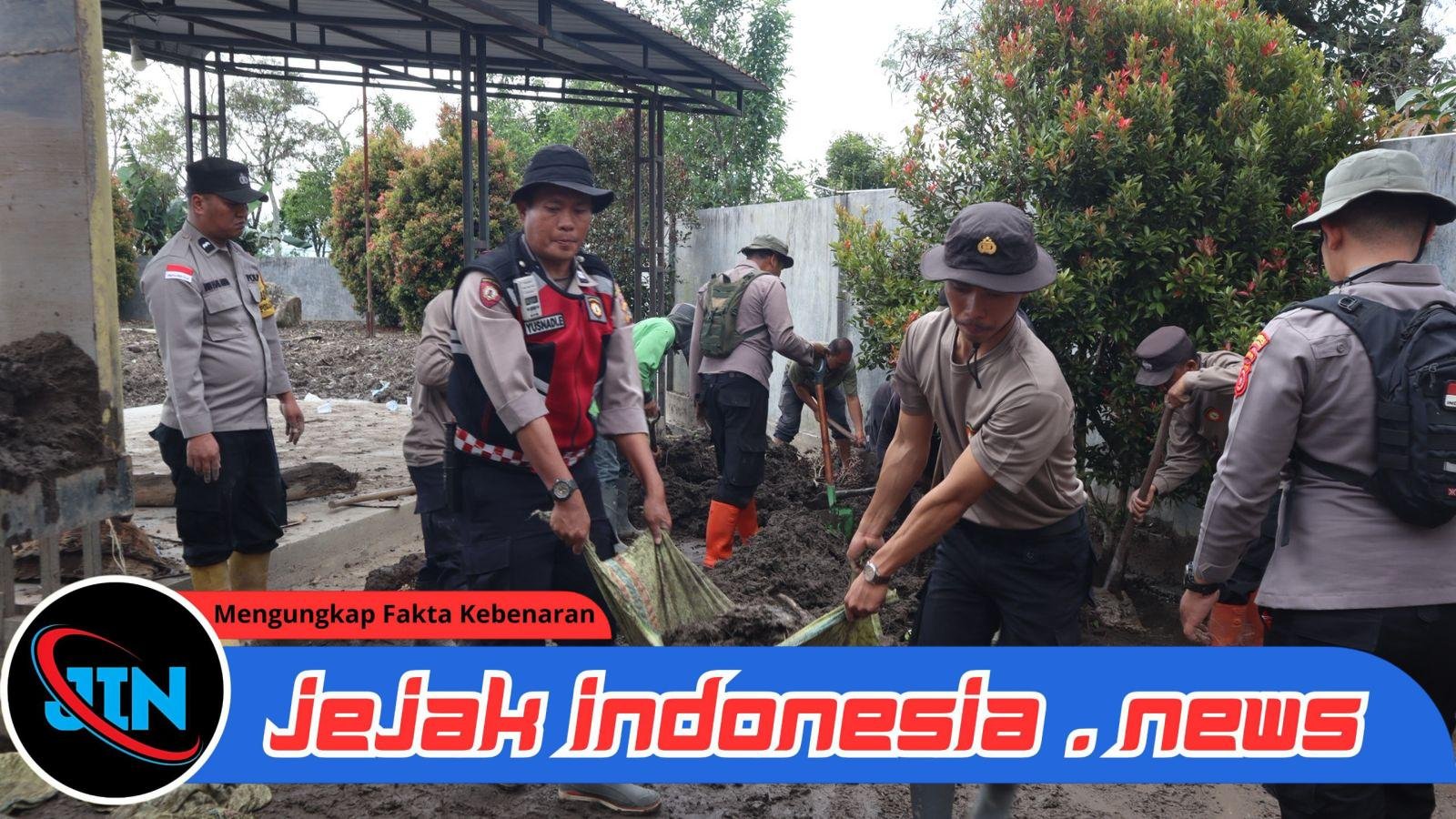 Tanpa mengenal lelah, personel Polri, Brimob, dan warga bergotong royong menyapu lumpur, mengangkat sisa material banjir dan longsor, serta menata kembali halaman dan area masjid. Kebersamaan tersebut menjadi potret nyata solidaritas dan kepedulian di tengah duka pascabencana.