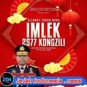 Jakarta, – Jejakindonesia.news // Kepala Divisi Humas Polri, Irjen Pol. Johnny Eddizon Isir, S.I.K., M.T.C.P., menyampaikan ucapan selamat merayakan Tahun Baru Imlek 2577 Kongzili kepada seluruh masyarakat yang merayakannya pada Selasa, 17 Februari 2026.