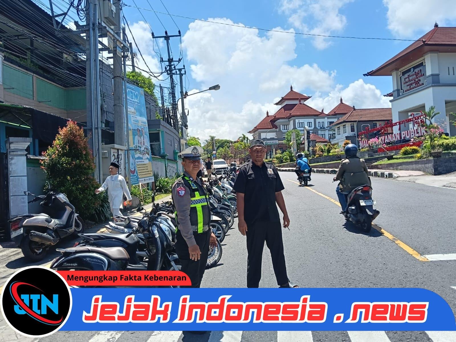 Polres Klungkung – Jejakindonesia.news // Personel Unit Lalu Lintas Polsek Klungkung melaksanakan pengamanan dan pengaturan arus lalu lintas dalam rangka kegiatan Sholat Jumat di Masjid Hasanudin, Klungkung, (10/4).