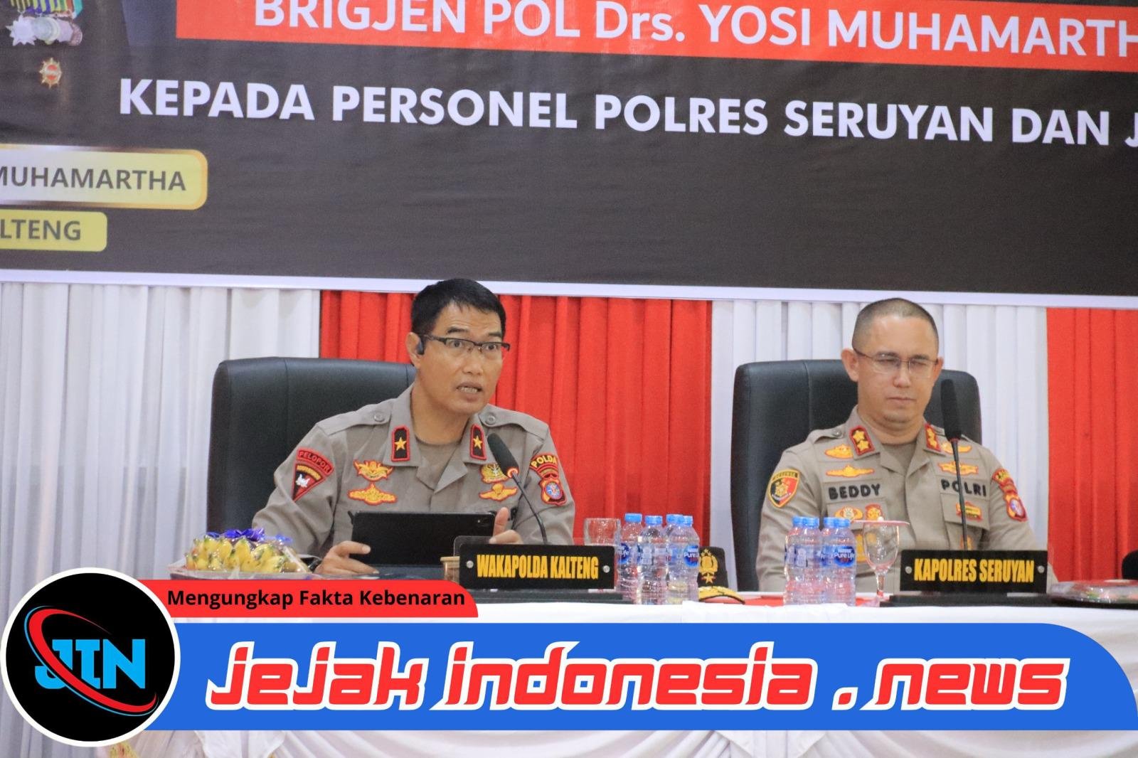 Seruyan – Jejakindonesia.news // Wakil Kepala Kepolisian Daerah Kalimantan Tengah, (Wakapolda Kalteng) Brigjen Pol Drs. Yosi Muhamartha, menekankan pentingnya transformasi pelayanan Polri saat memberikan arahan kepada jajaran Polres Seruyan di Aula Patriatama 95, Senin (27/4/2026) sore.