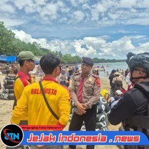 Dalam patroli tersebut, IPTU Enjang Sutisna bersama personel menyusuri area pantai, memantau situasi serta berinteraksi langsung dengan masyarakat. Kehadiran aparat kepolisian di tengah aktivitas wisatawan diharapkan dapat memberikan rasa aman serta mencegah potensi gangguan kamtibmas.